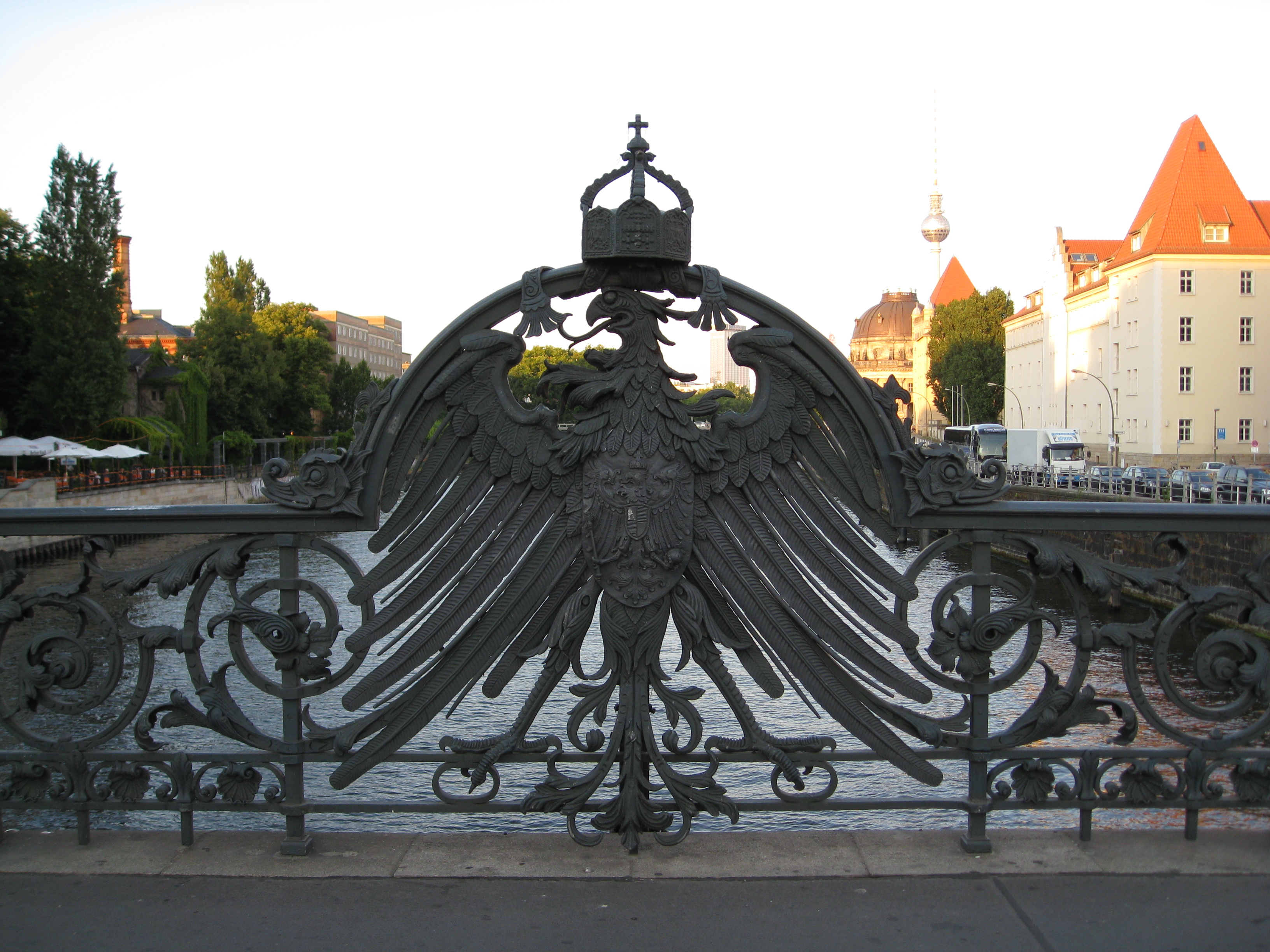 Bridge on Friedrichstraße crossing Spree just North of Friedrichstraße S-bahn station. Bode museum and Berliner Fernsehturm can be seen in the background. This was the first sight I saw on foot in Berlin.