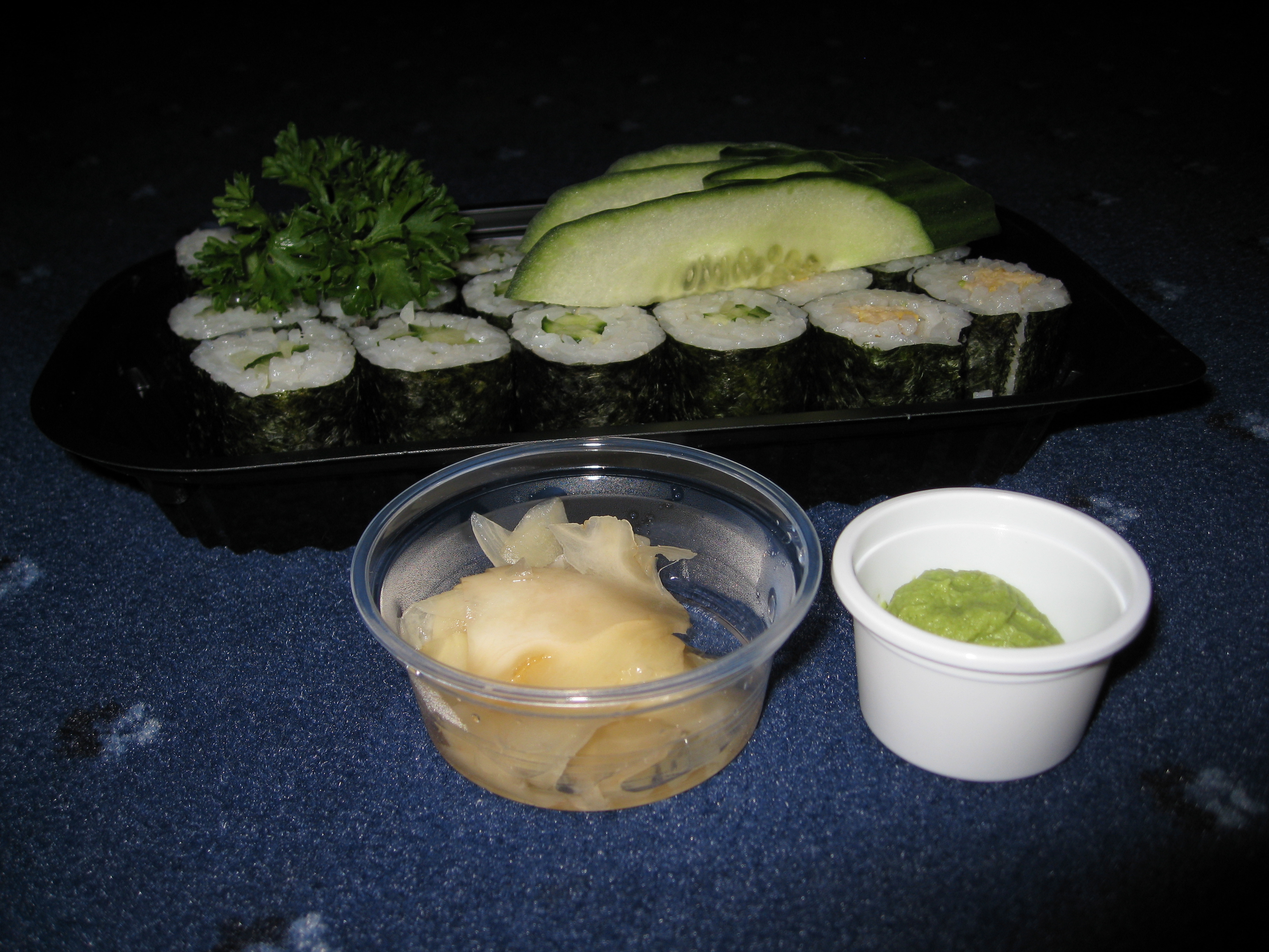 Breakfast, lunch, dinner and supper all-in-one. Two sets of kappa maki, one set of tamago maki. Two sets for five euro, one set for three. In Finland you're lucky if you manage to get one set for five euro! Guess what I ate in Berlin.