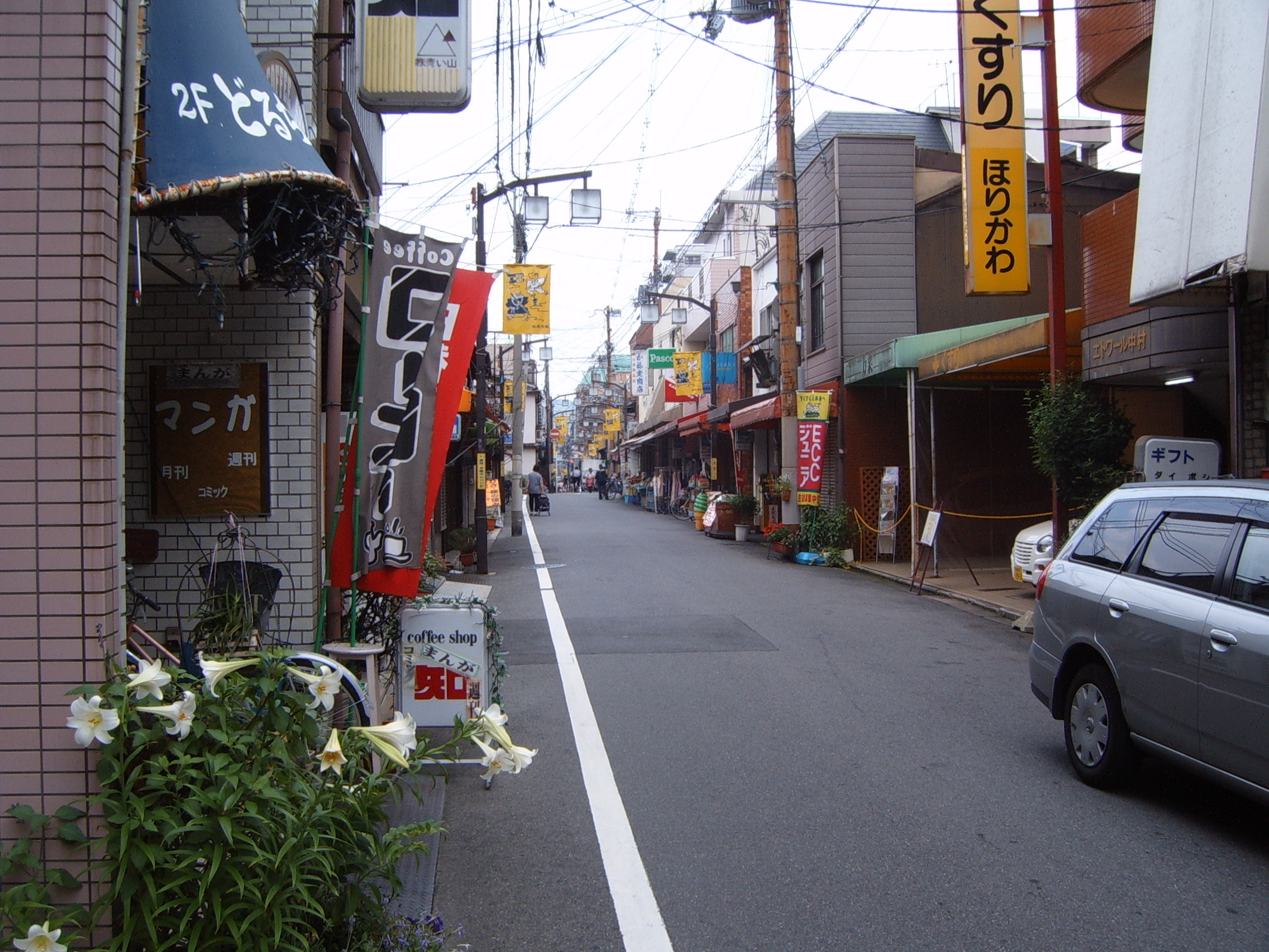 Narrow streets of Kyoto. It seems that the city is laid in grids, divided by big wide roads. In the middle of these roads lay real Kyoto with small buildings and narrow roads. I bought a bag of bananas here, cheaper than what they would be in Finland. In Tokyo it would cost five times as much.